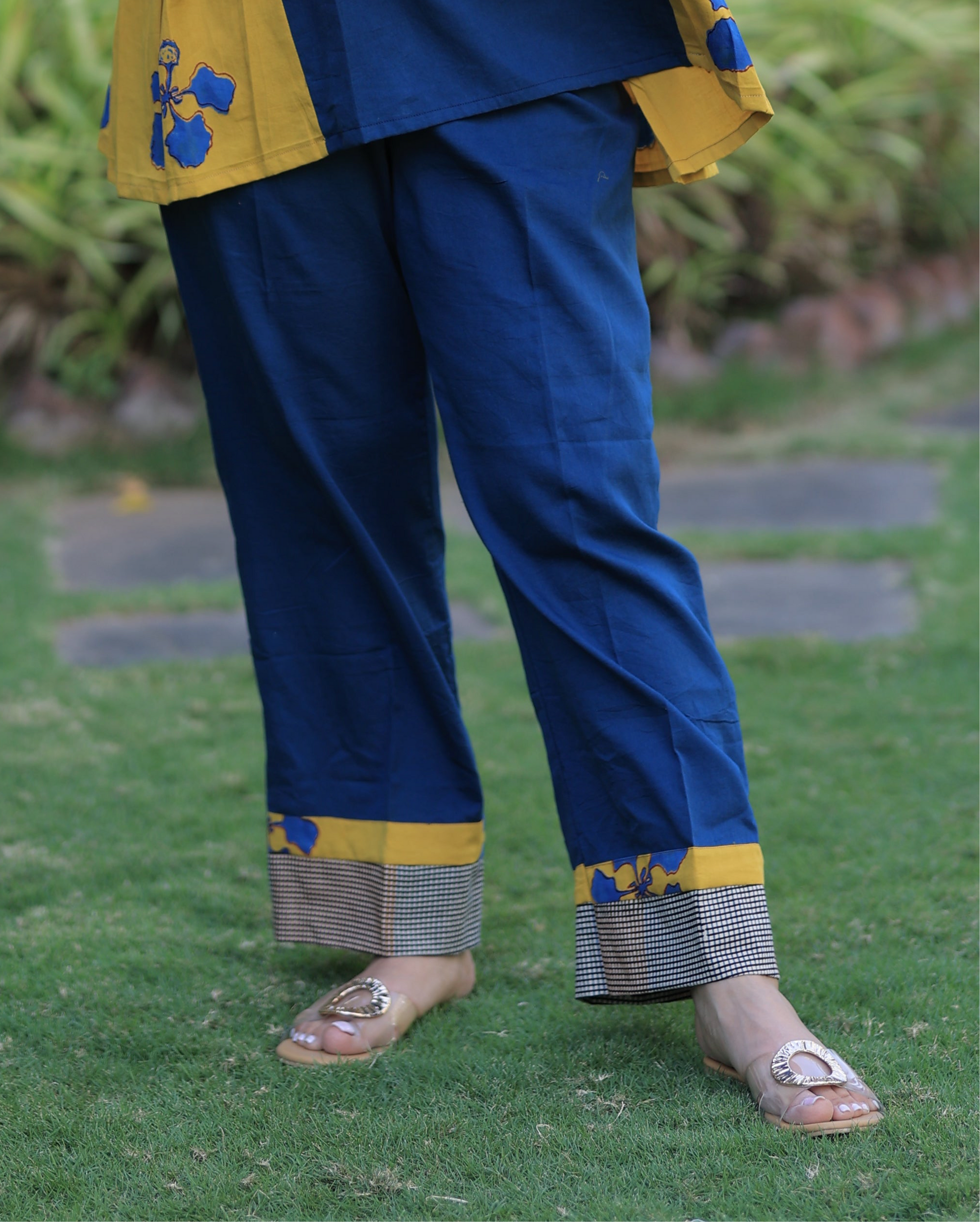 Bottom Indigo - Mustard Checkered Kusum Print Co-ord set