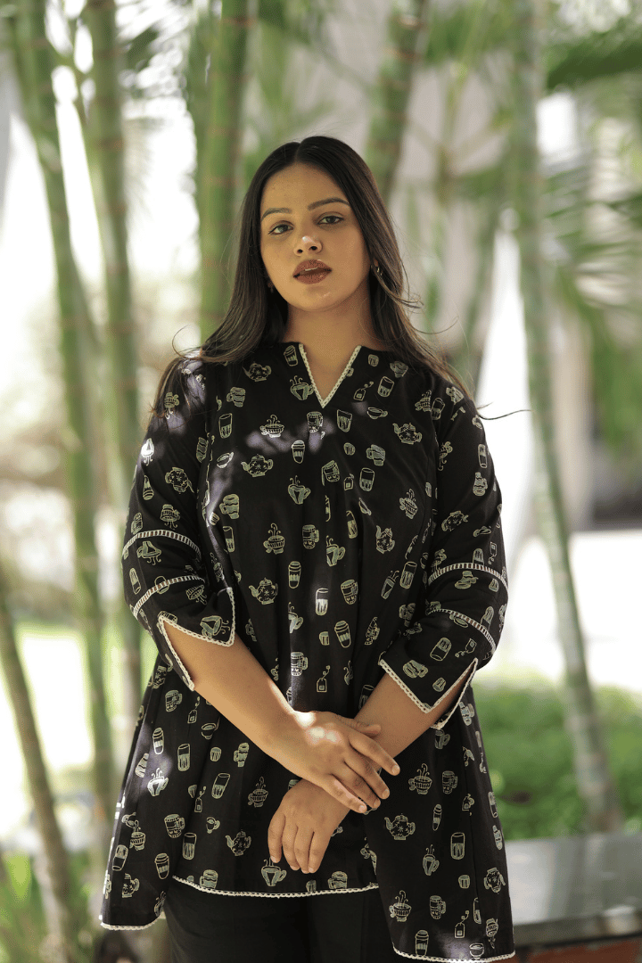 Coffee Cup Summer Co-ord Set - Rustic Black