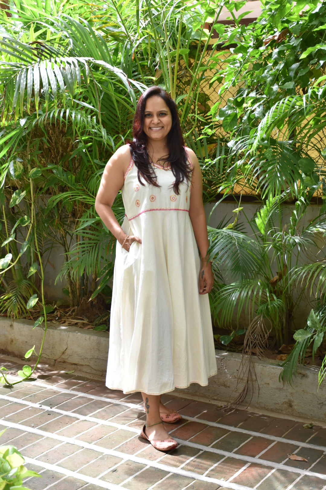 Hand Work Aabhala White Midi Dress