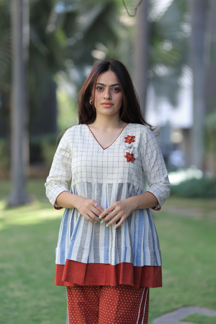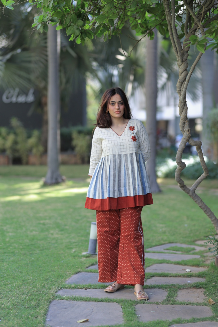 • We are redefining contemporary fashion with our natural hand woven khadi co-ord set , a perfect bland of comfort and style