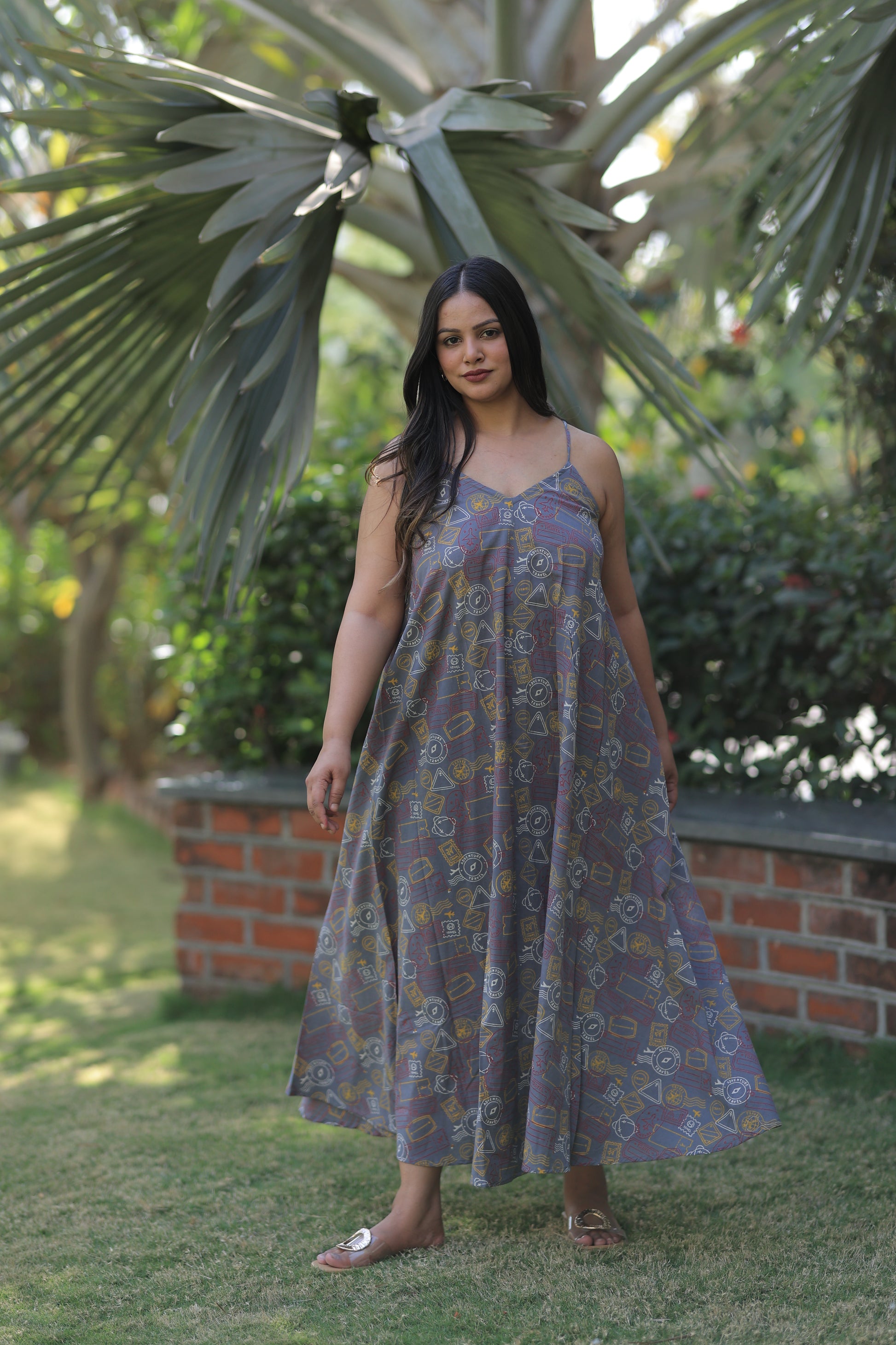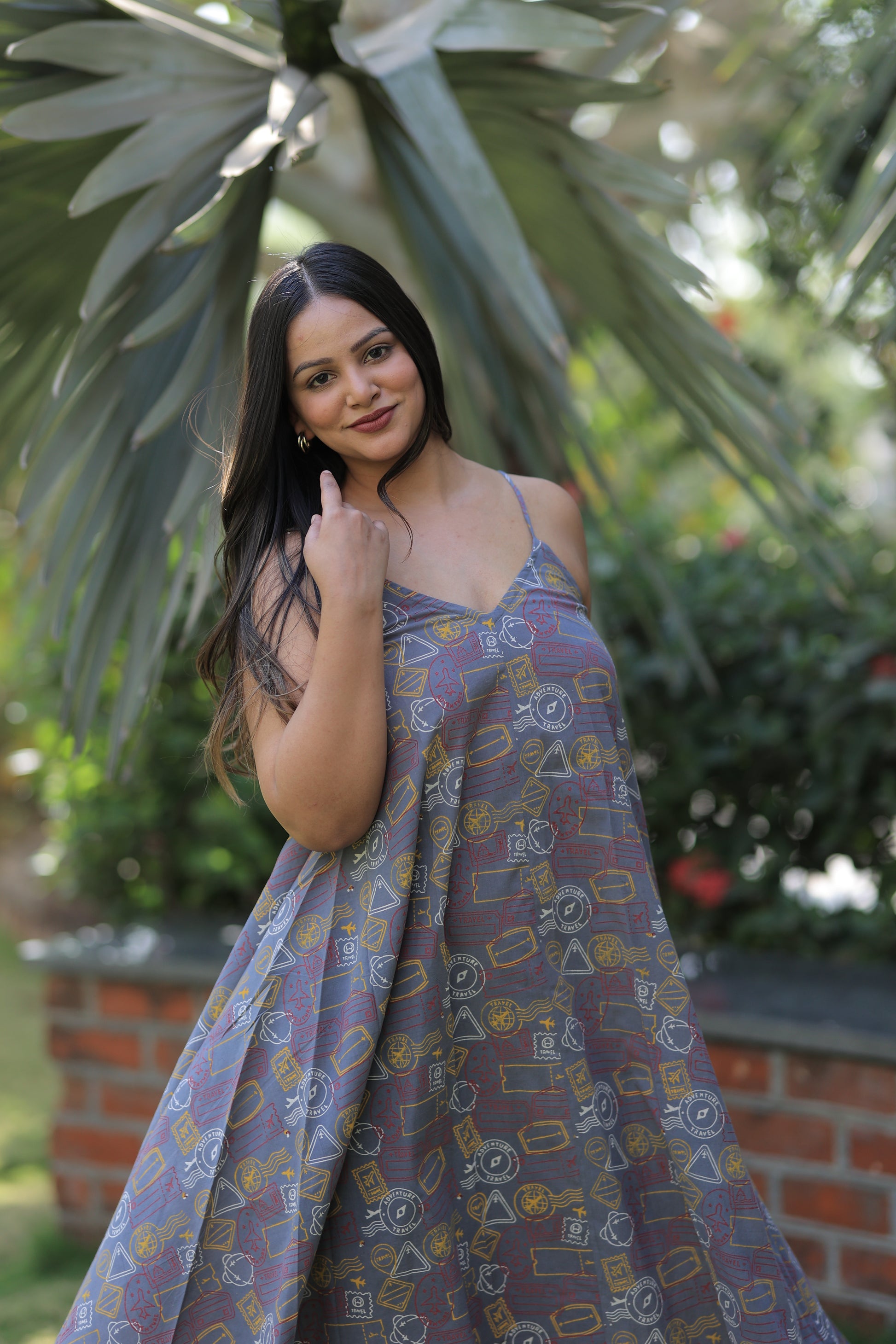 Passport Stamps Beach Maxi Dress - Comfy Gray