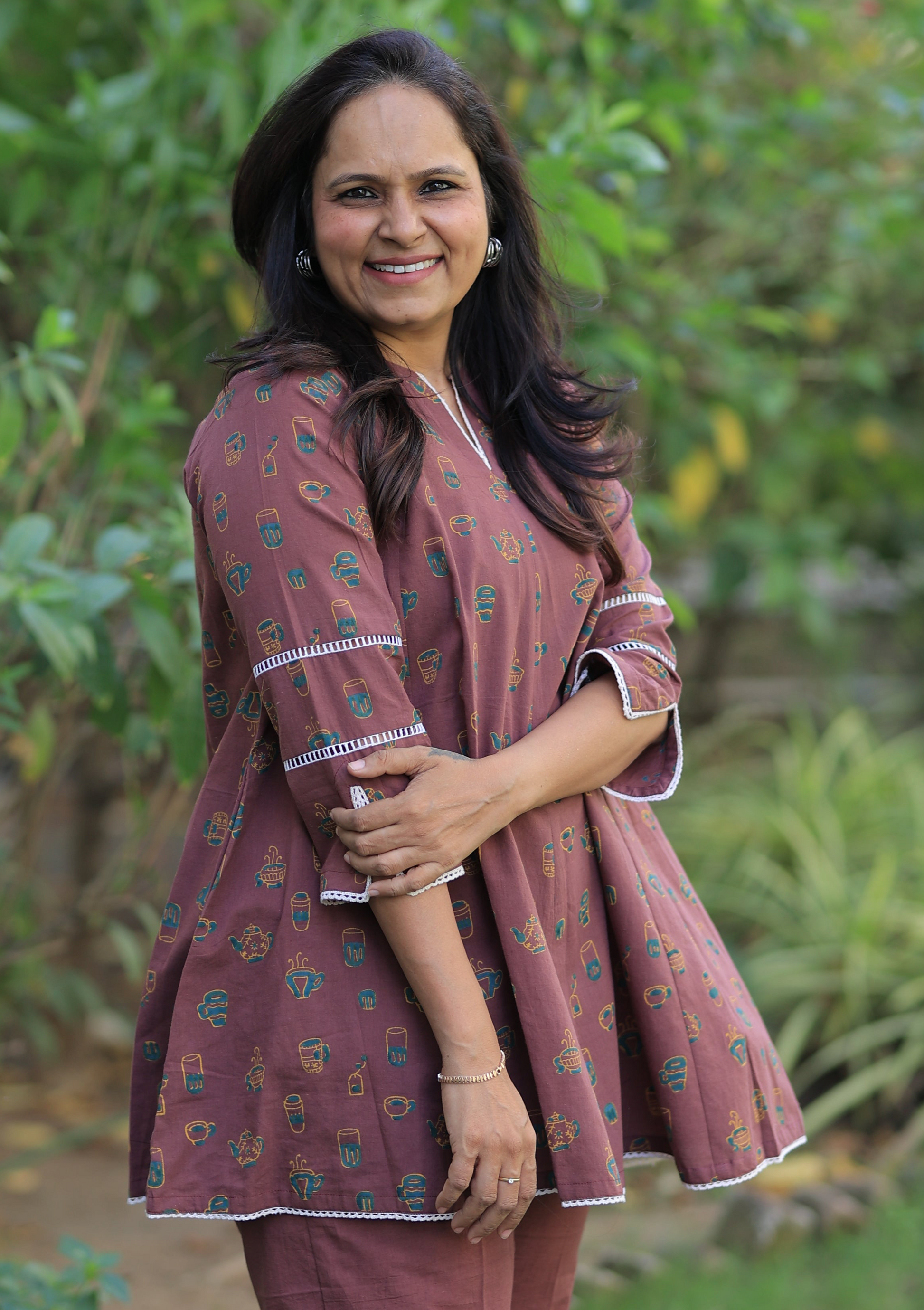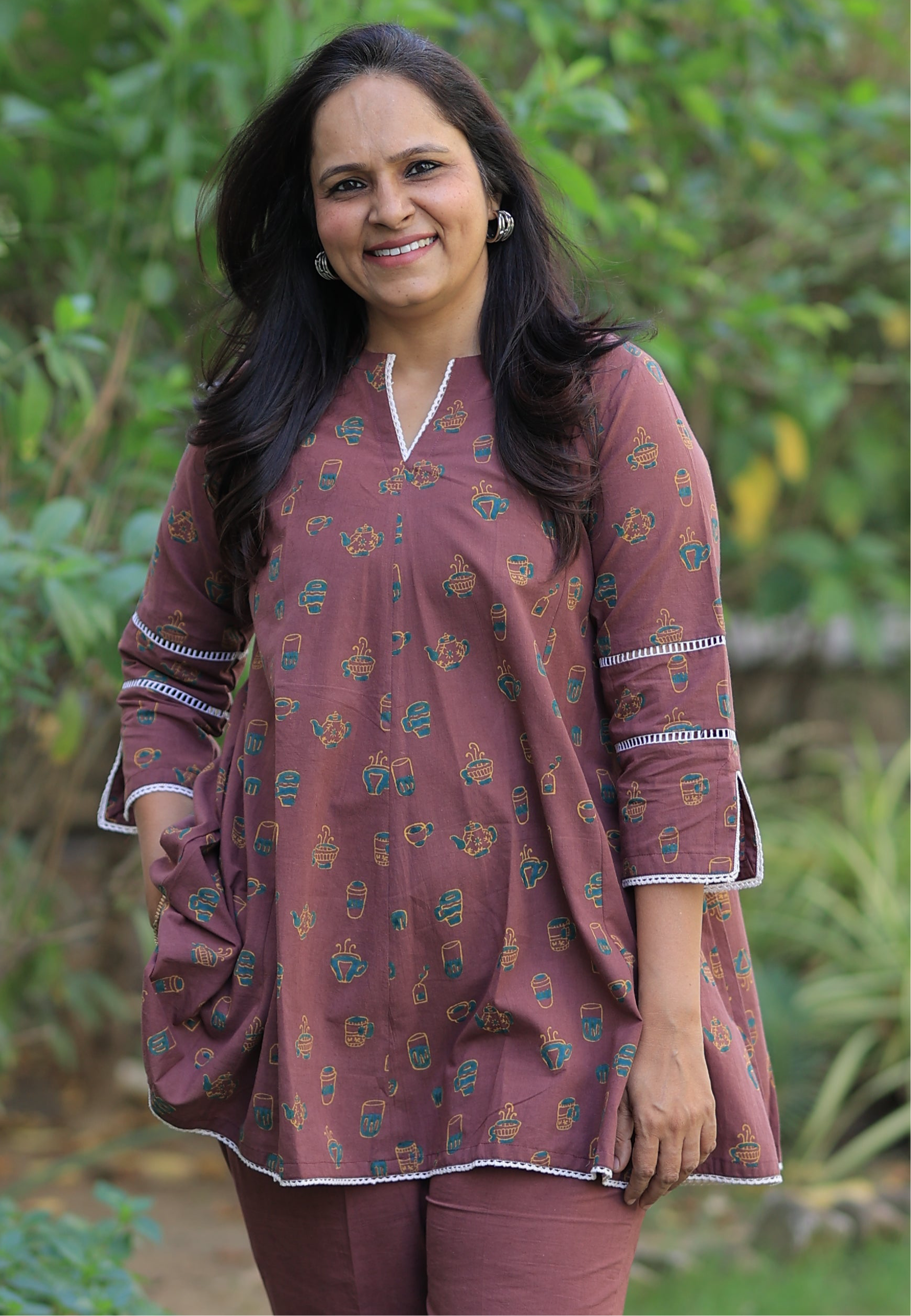 Top - Coffee Cup Summer Co-ord Set - Burgandy